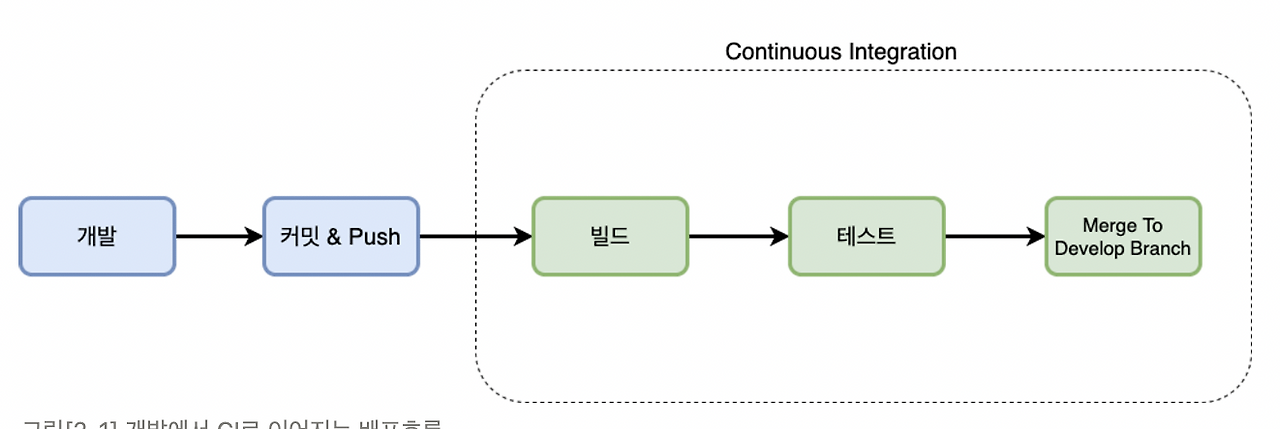 개발자는 코드를 작성하고 커밋만 진행한다면, 이후의 빌드, 테스트 과정은 자동으로 진행됩니다.